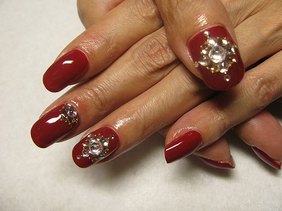 真っ赤なネイルにストーンが素敵です。