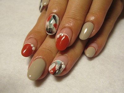 全体的にシックな色味を使ってるので秋ネイルの出来上がり。